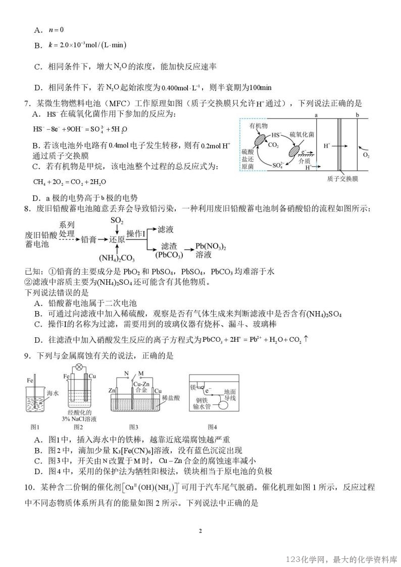 一、选择题:本题共计10小题,每小题2分,共20分。每小题只有一个选项符合题意。