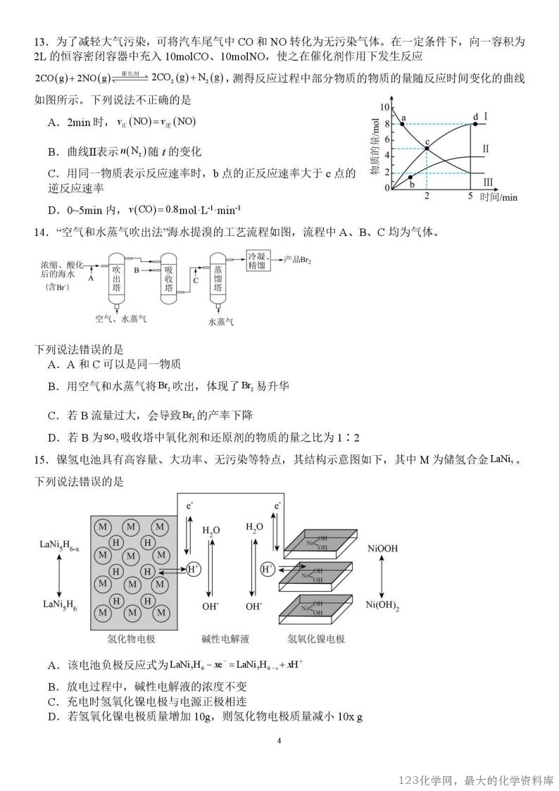 可能用到的相对原子质量: H1 C12 N 14 016 Ni59 Fe56 Ti48 La 139