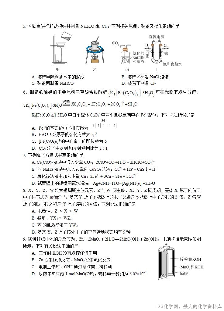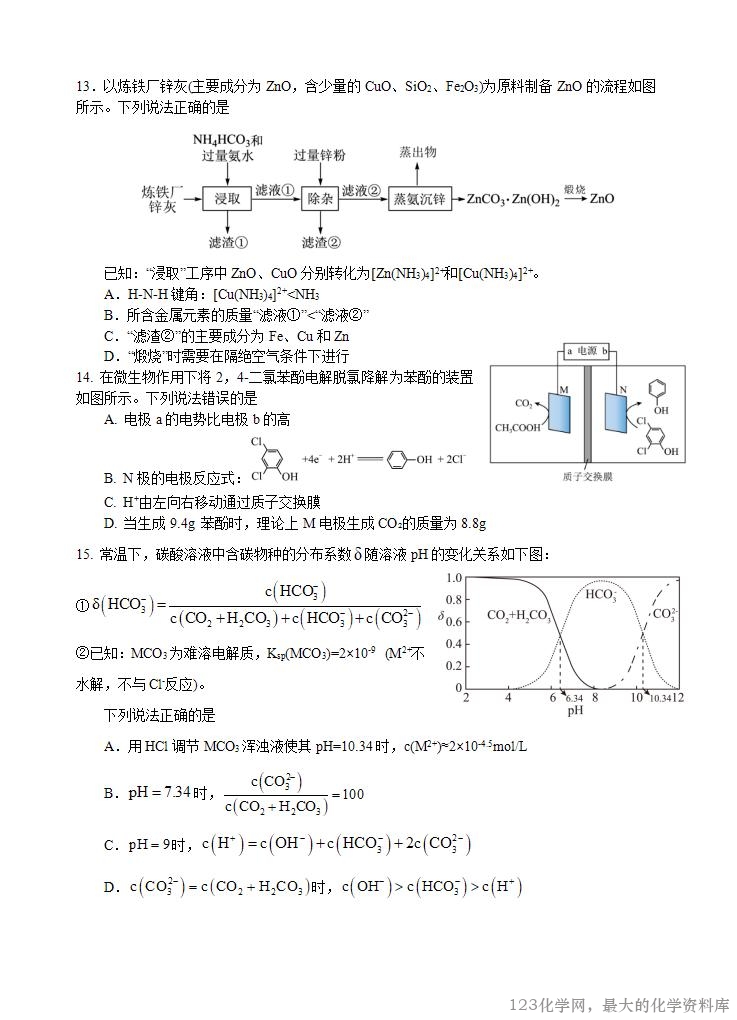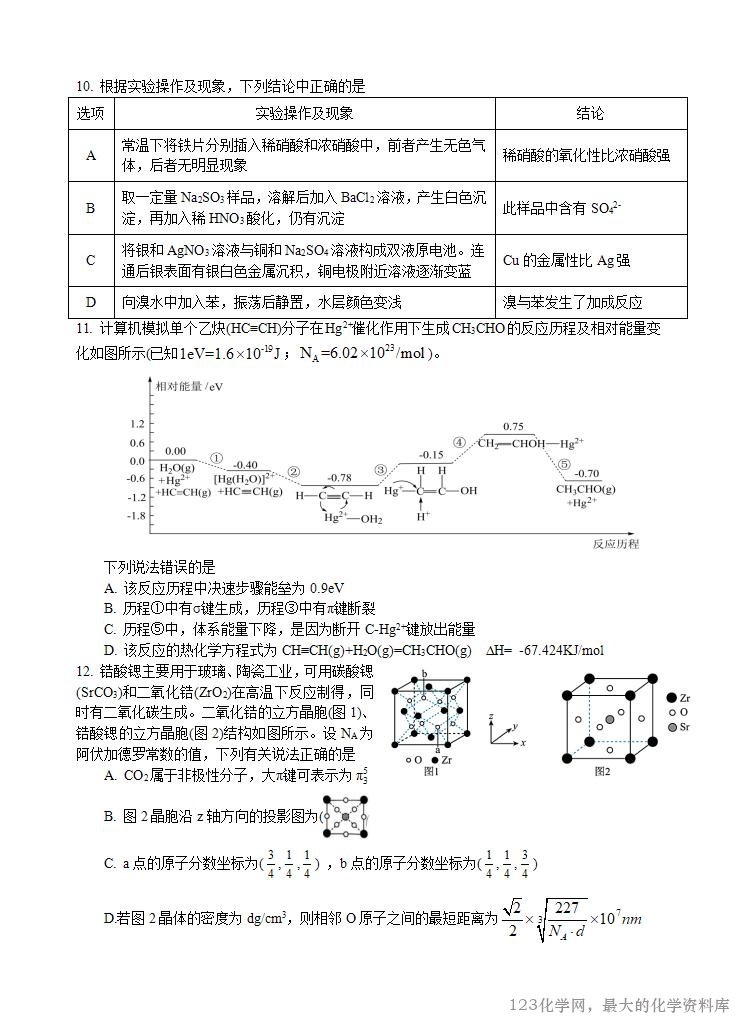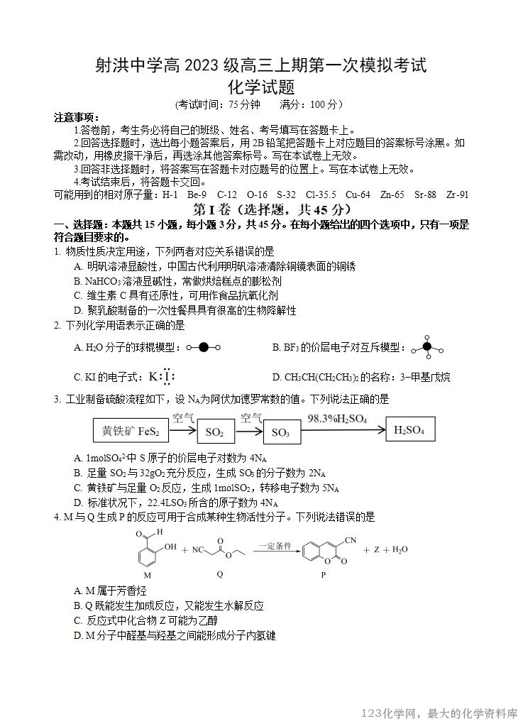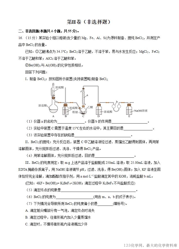 可能用到的相对原子量:H-1 Be-9 C-12 O-16 S-32 Cl-35.5 Cu-64 Zn-65 Sr-88 Zr-91