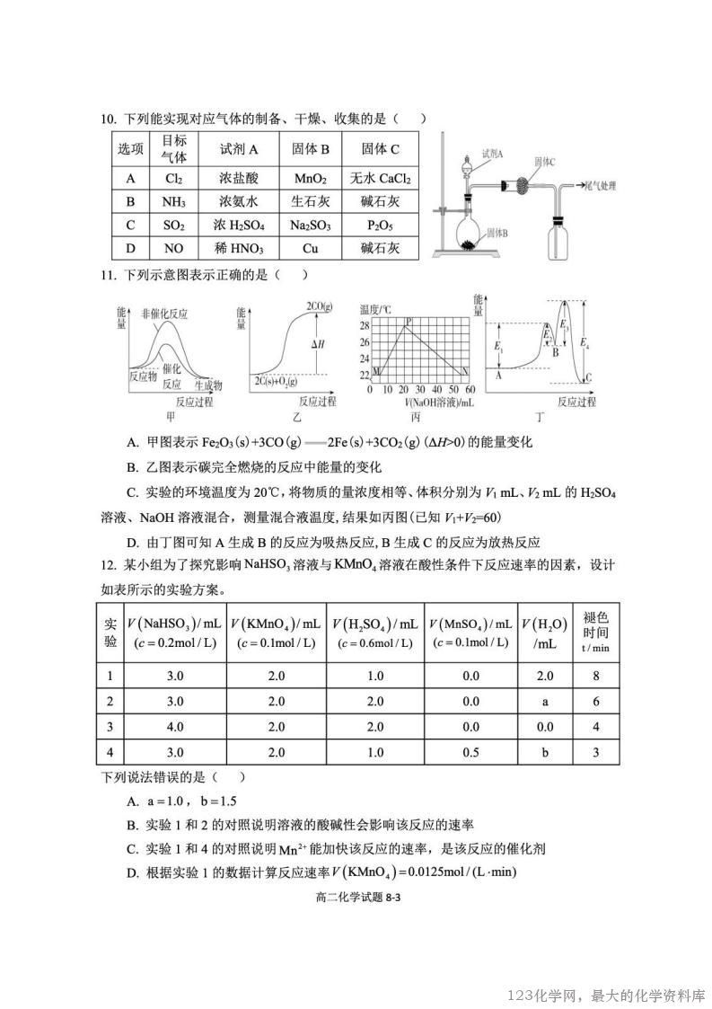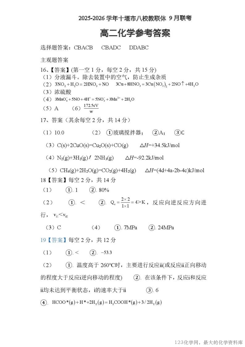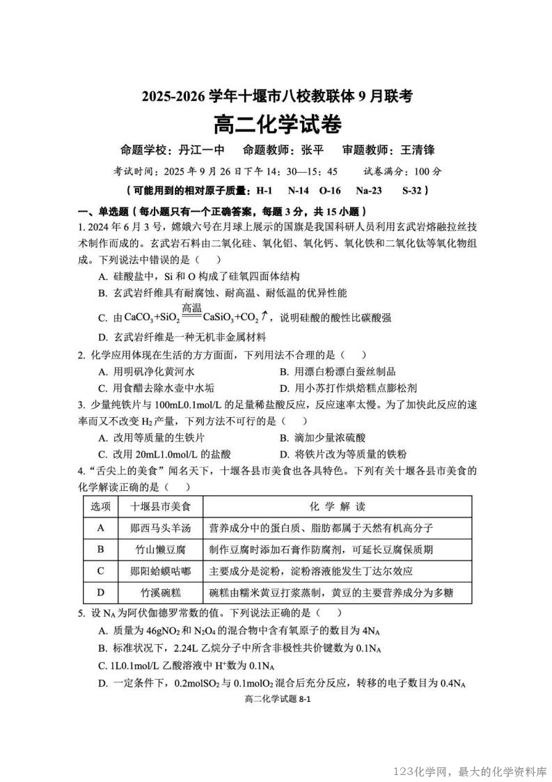 湖北省十堰市八校教联体2025-2026学年高二9月联考化学试卷含答案