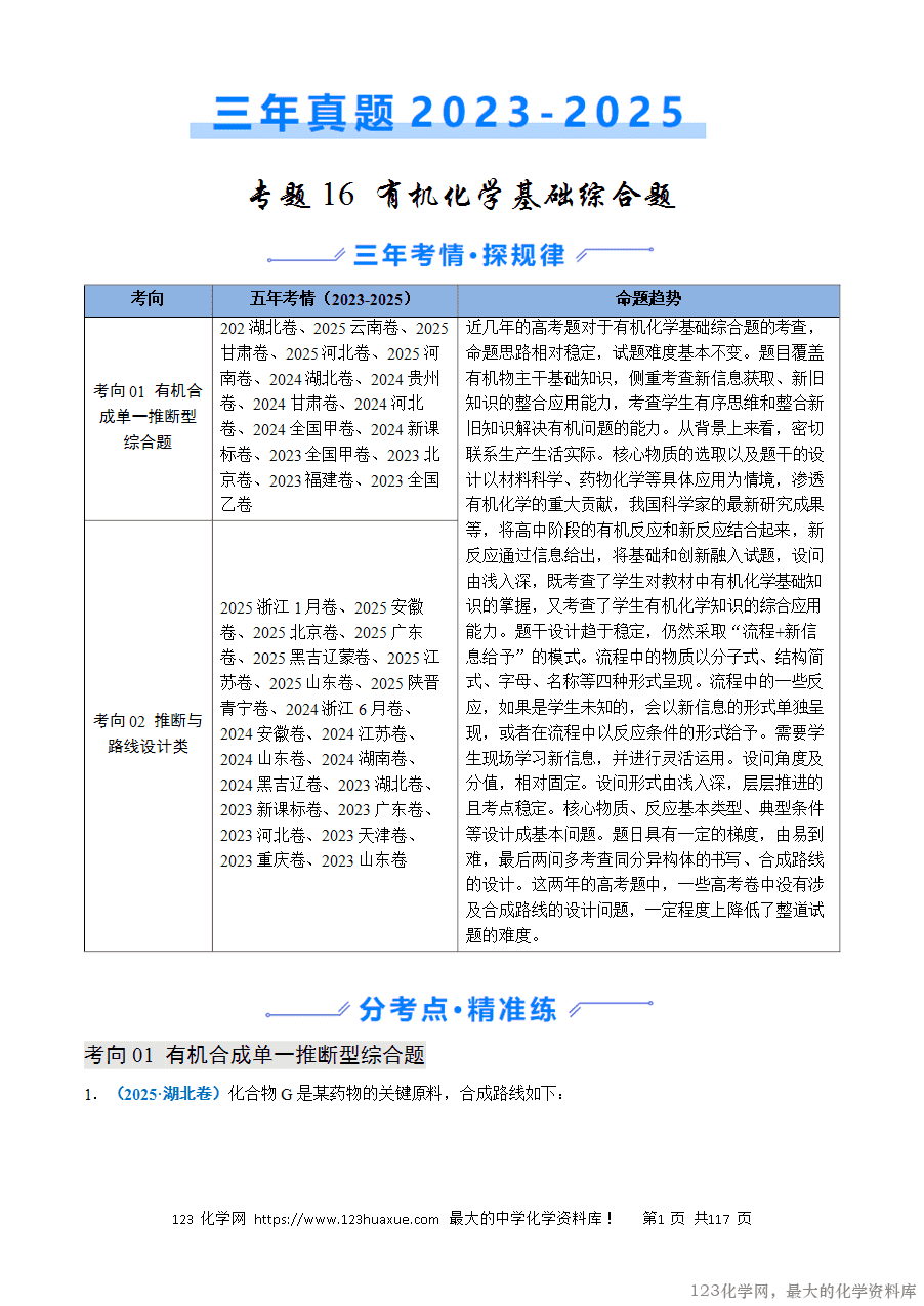 三年高考(2023~2025)高考化学真题分类汇编专题16有机化学基础综合题(解析版)