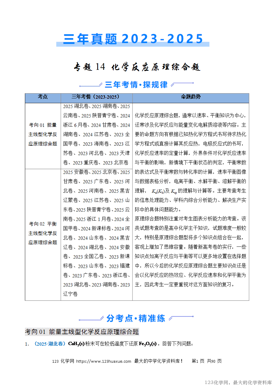 化学反应原理综合题,通常以速率、平衡知识为中心,还常涉及化学反应与能量变化电解质溶液等内容。主要的命题方向有根据已知热化学方程式书写待求热化学方程式或直接计算其反应热,电极反应式的书写,化学反应速率的定量计算,外界条件对化学反应速率与平衡的影响,新情境下平衡状态的判定,平衡常数的表达式及平衡常数与转化率的计算,速率平衡图像与数据表格分析,电离平衡、水解平衡、溶解平衡的理解, Ka(Kb)及Ksp的理解与计算等。主要考查考生的信息处理能力、学科内综合分析能力、解决生产实际中的具体问题能力。