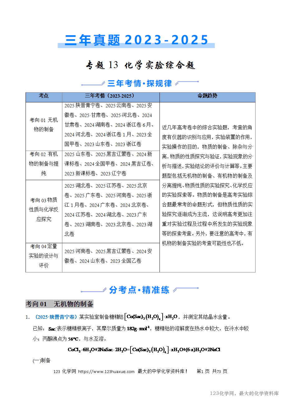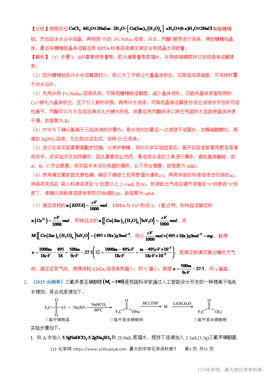 1.(2025·陕晋青宁卷)某实验室制备糖精钴,并测定其结晶水含量。