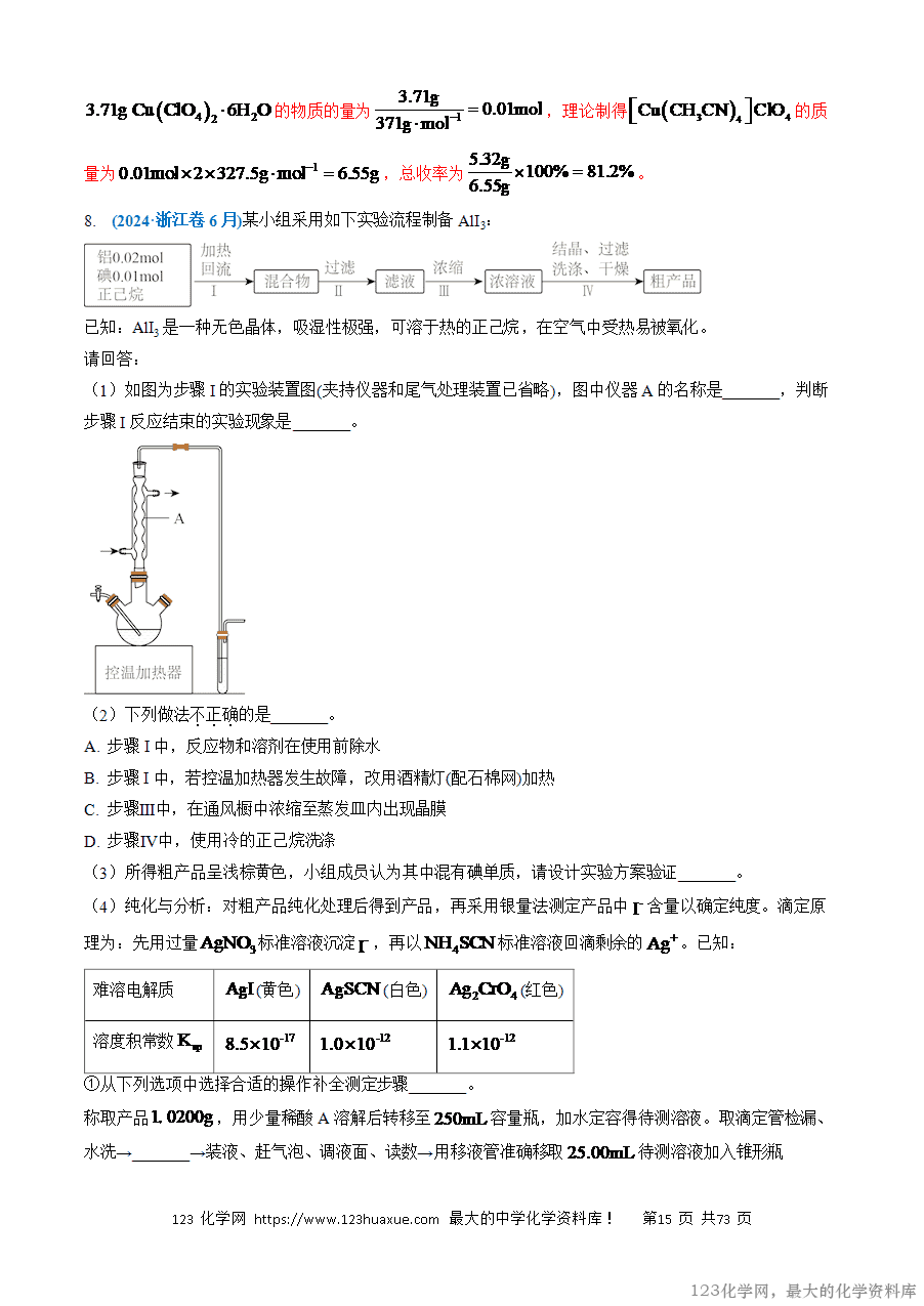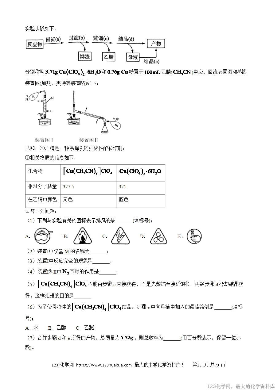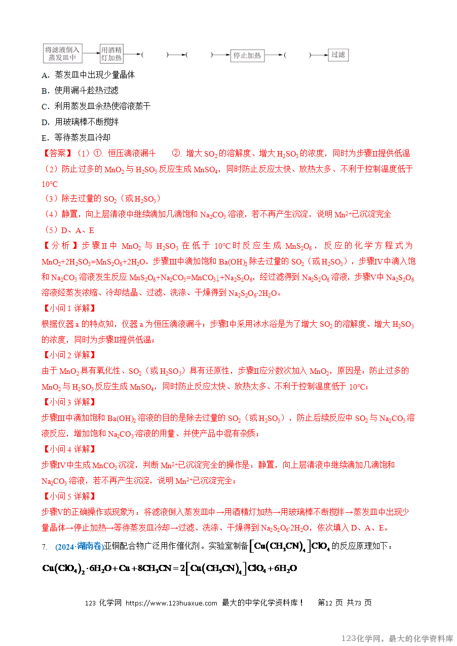 【解析】(1)步骤I、Ⅱ中需要使用量筒、胶头滴管量取蒸馏水,并用玻璃棒搅拌以加快固体溶解速率。