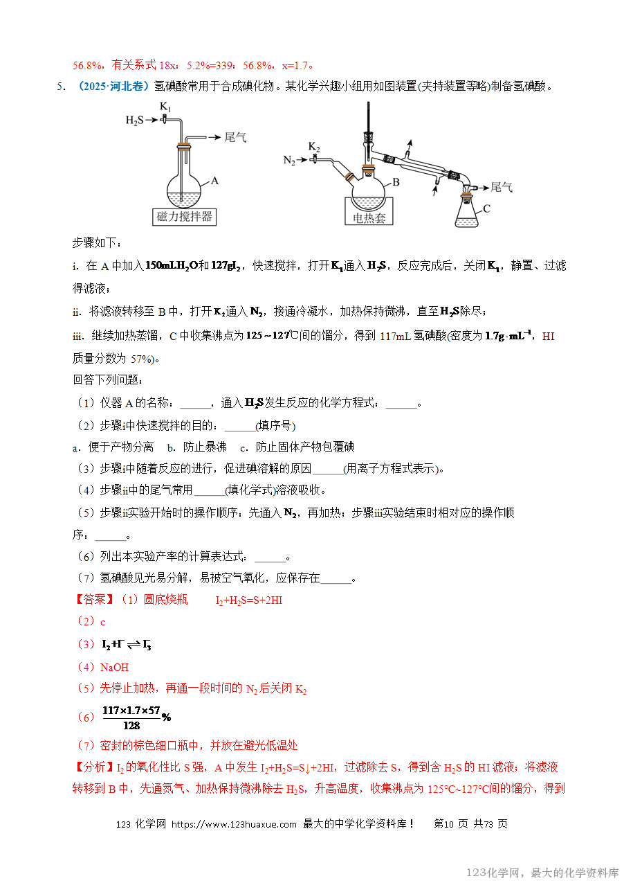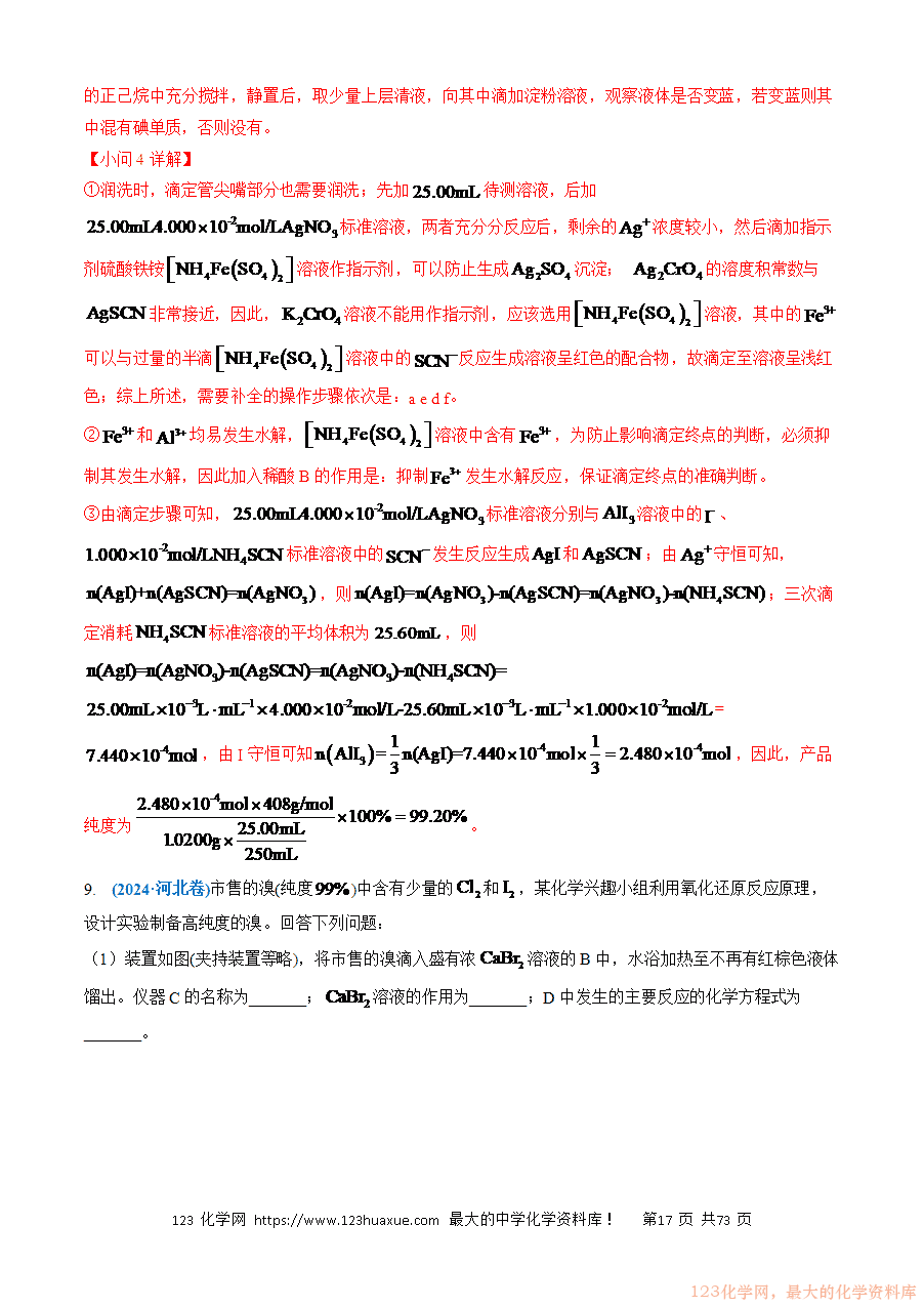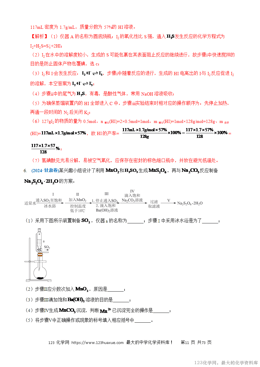 【解析】(1)步骤I、Ⅱ中需要使用量筒、胶头滴管量取蒸馏水,并用玻璃棒搅拌以加快固体溶解速率。