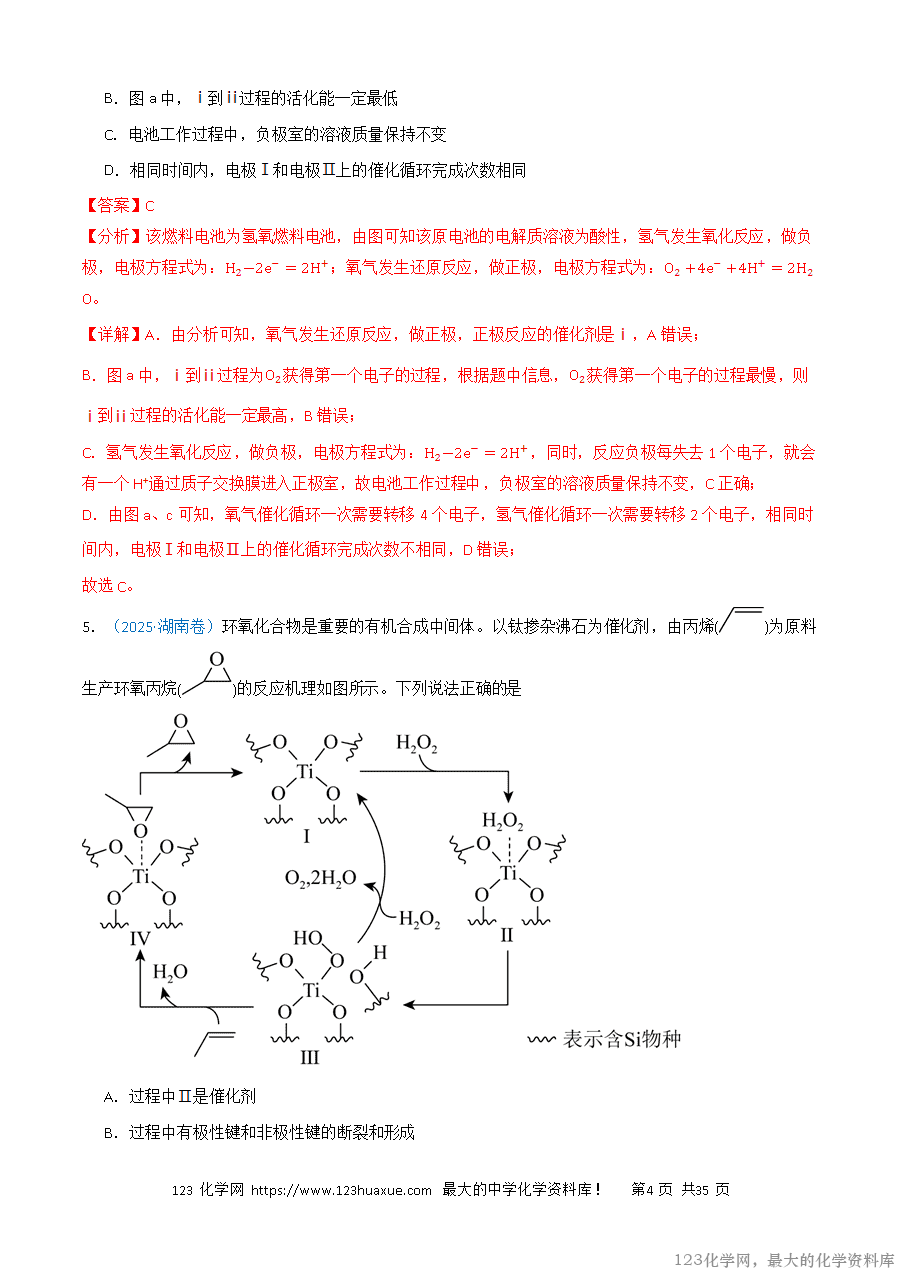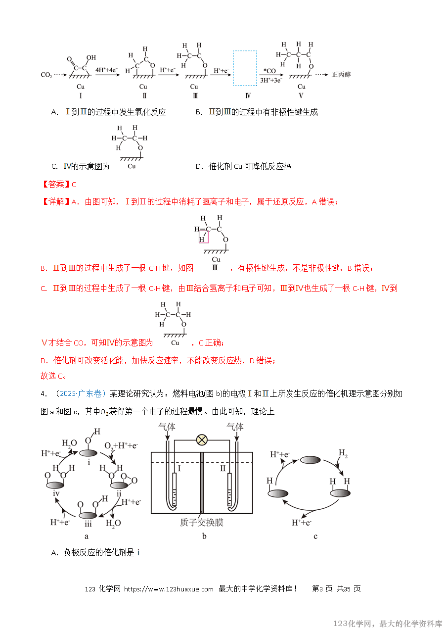 4.(2025·广东卷)某理论研究认为:燃料电池(图b)的电极Ⅰ和Ⅱ上所发生反应的催化机理示意图分别如