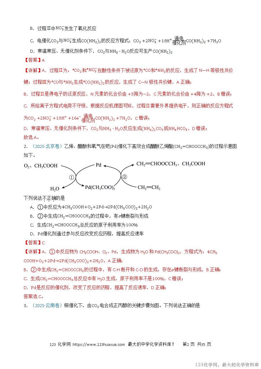 2.(2025·北京卷)乙烯、醋酸和氧气在钯()催化下高效合成醋酸乙烯酯()的过程示意图如下。