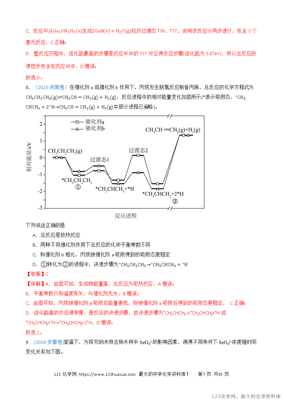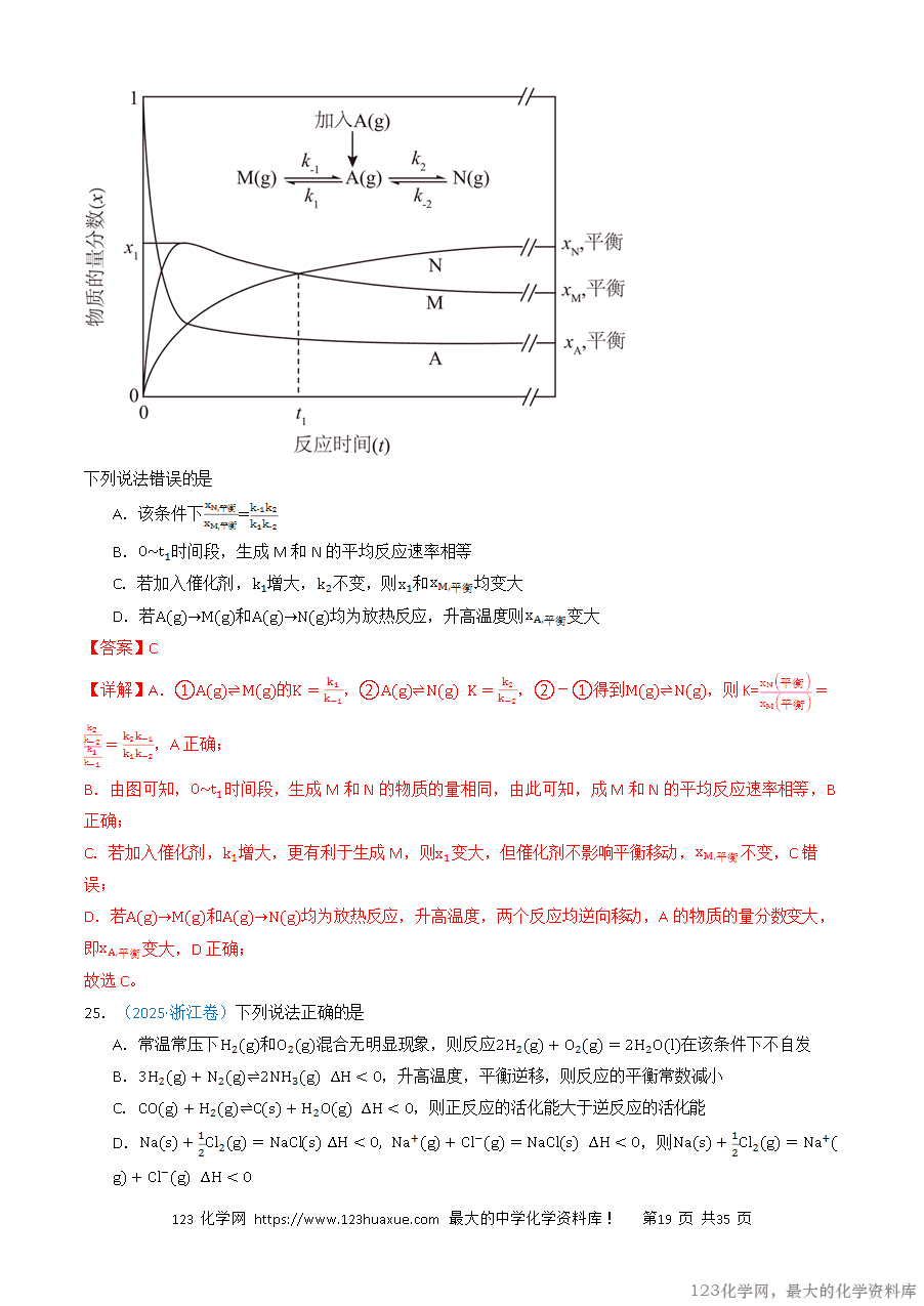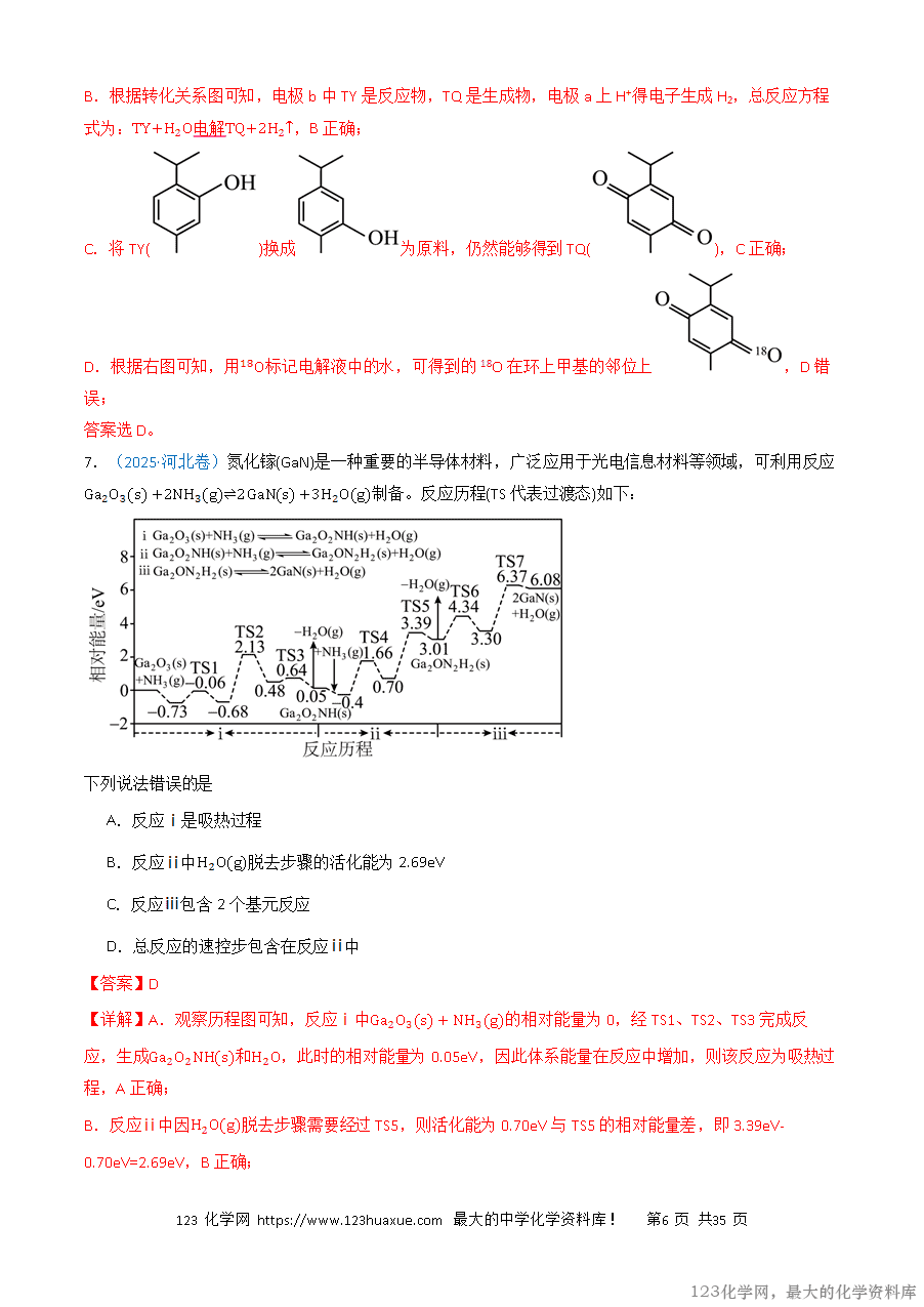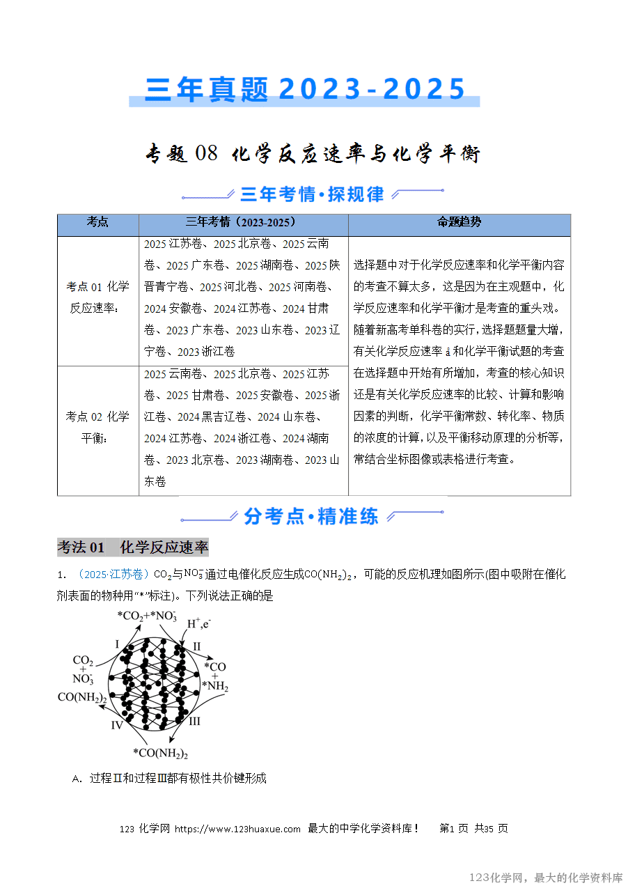 1.(2025·江苏卷)与通过电催化反应生成,可能的反应机理如图所示(图中吸附在催化剂表面的物种用“*”标注)。下列说法正确的是