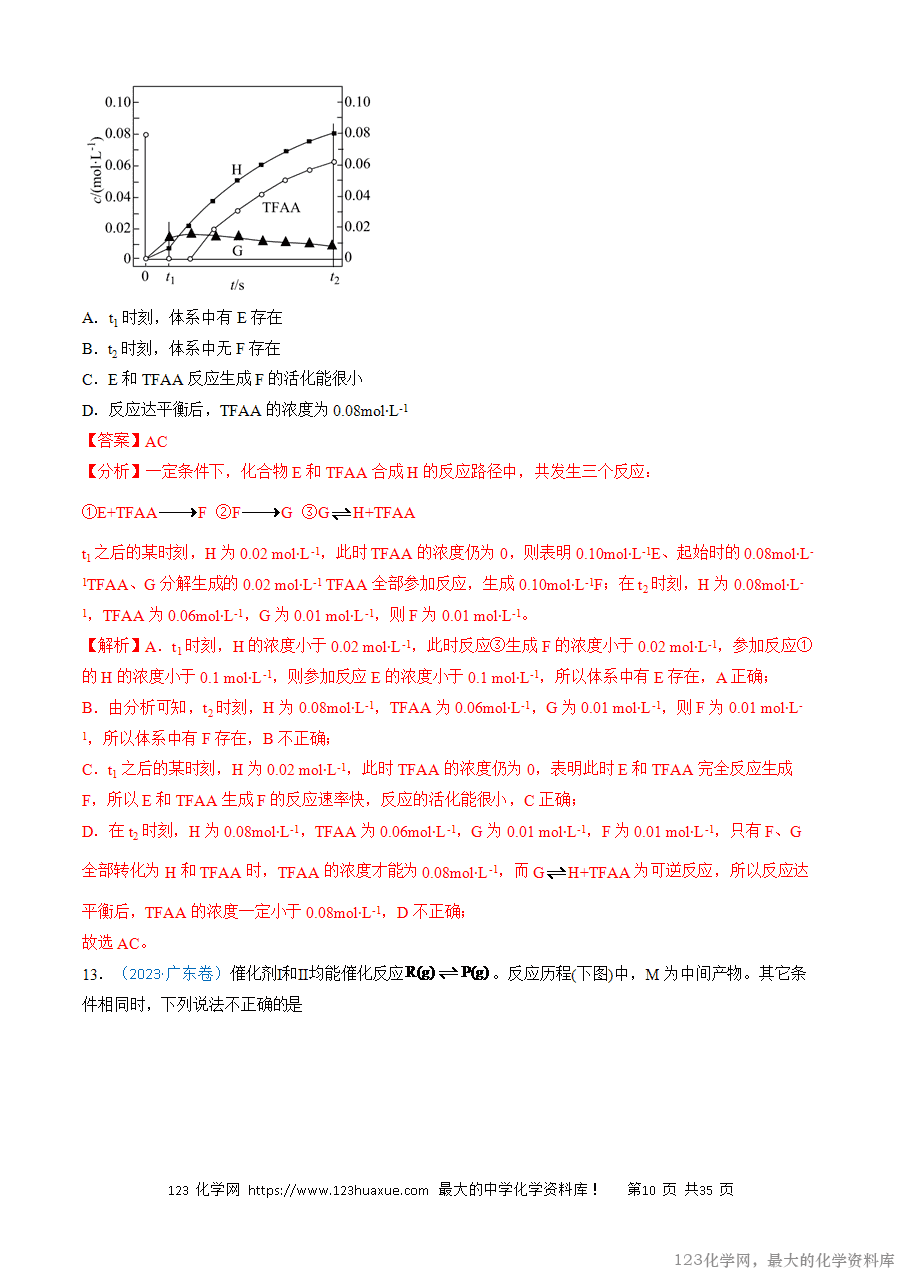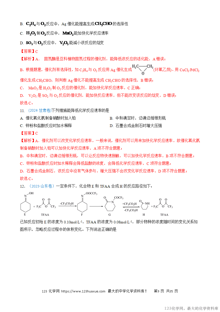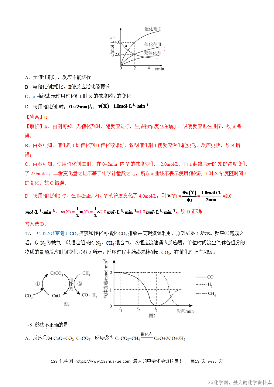 D.是反应的催化剂,改变了反应的历程,提高了反应速率,D正确;