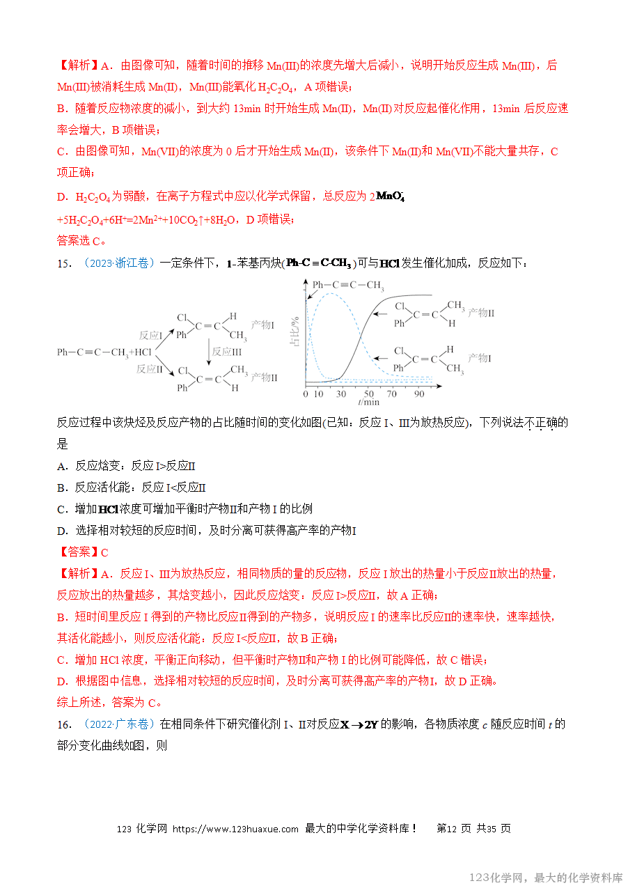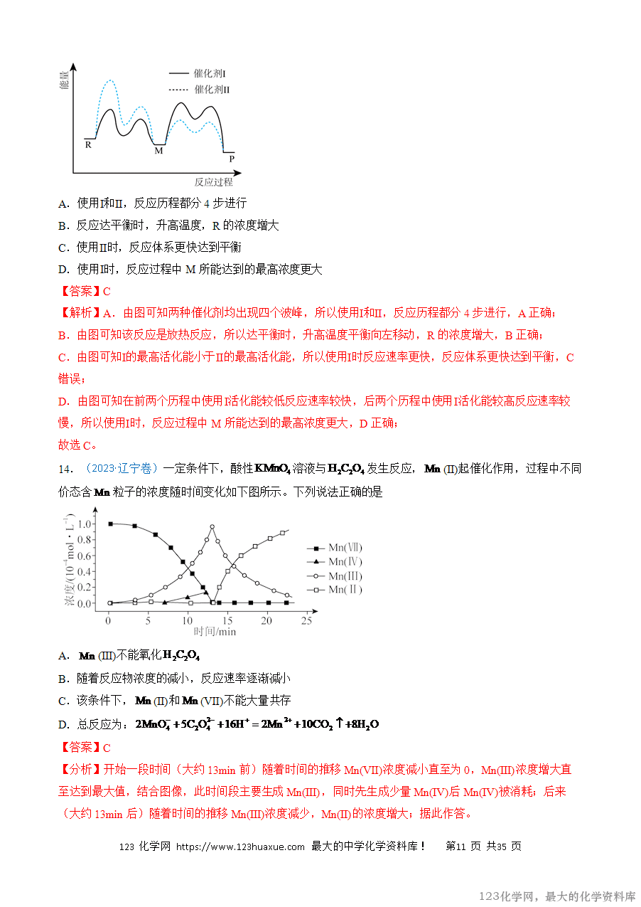 C.所给离子方程式电荷不守恒,根据反应机理图可知,过程Ⅱ需要外界提供电子,则正确的反应方程式为,C错误;