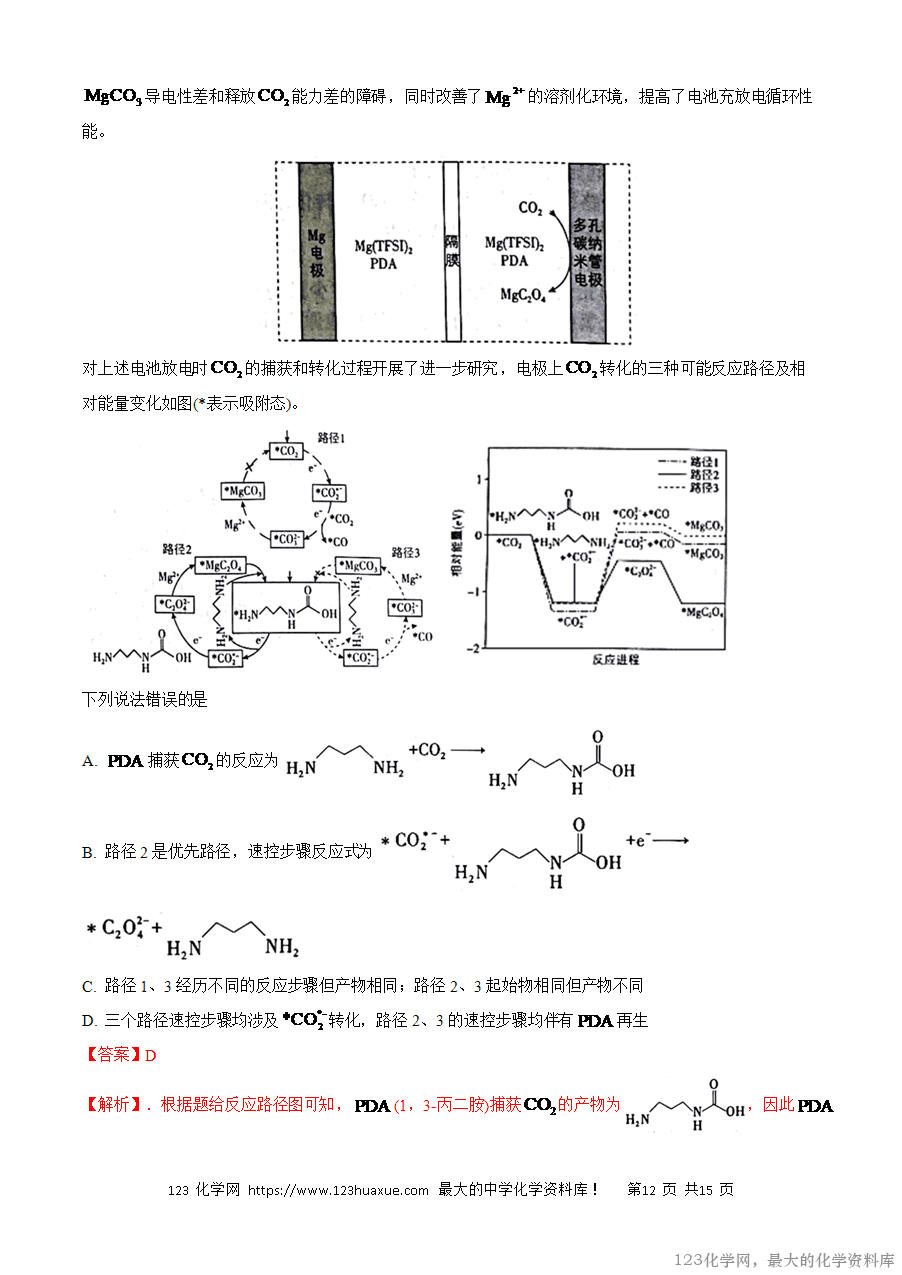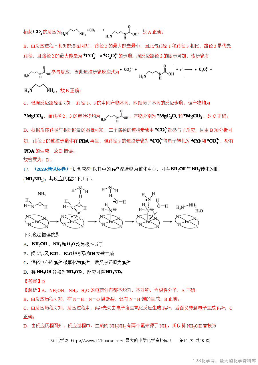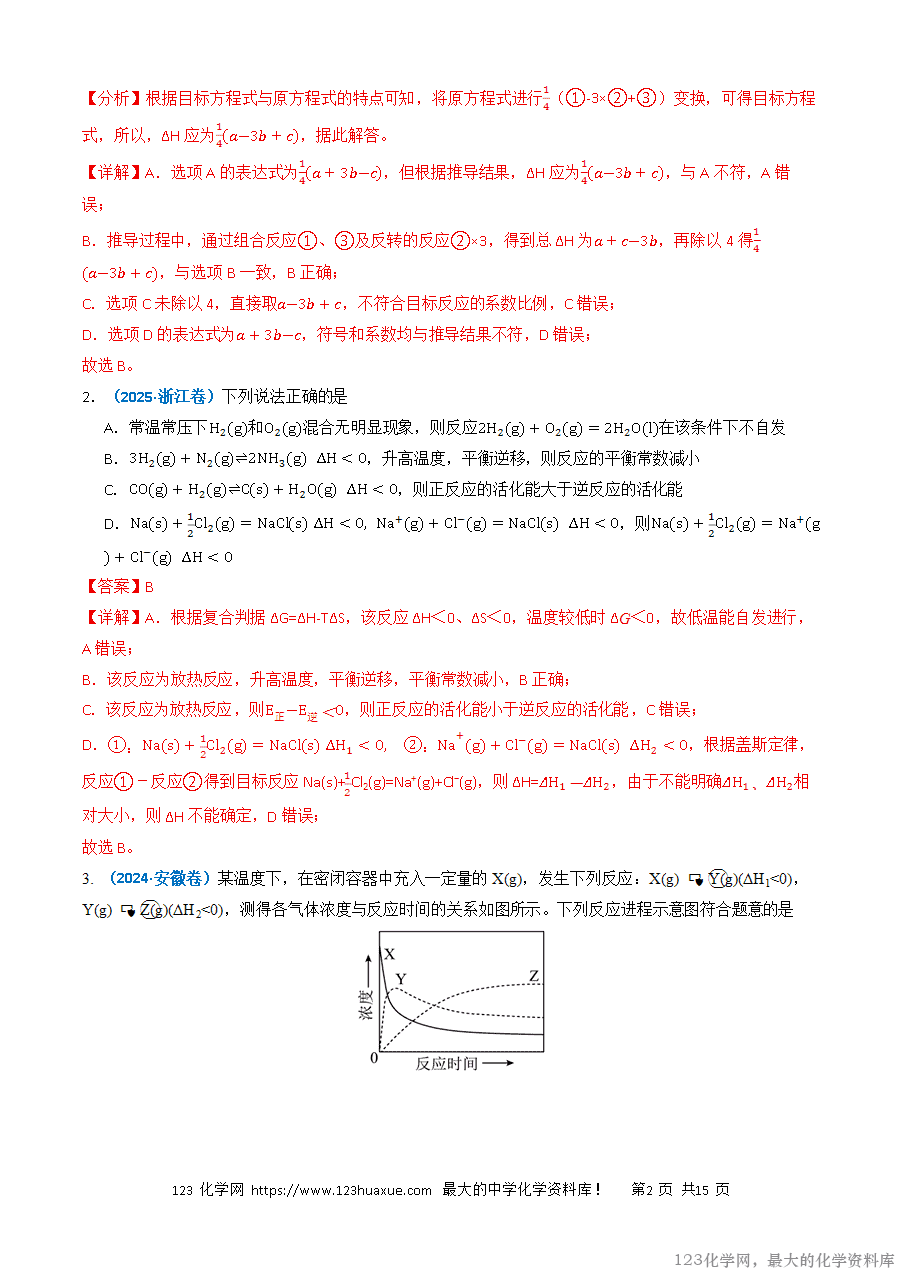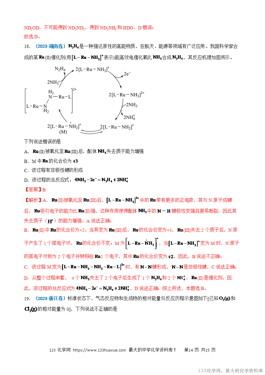 高考中有关化学反应的热效应内容的考查在选择题和主观题中都会涉及,在选择题中考查的主要形式有两种:一是考查简单的化学反应能量变化形式和能源对自然环境和社会发展的影响;二是以陌生的化学反应机理图为载体进行考查,涉及的知识点较多,如氧化还原反应、化学键的判断、方程式的书写等。随着新高考单科卷的实行,对应化学反应的热效应的考查也会有所增加,有关焓变的比较和热化学方程式的判断会增加考查。