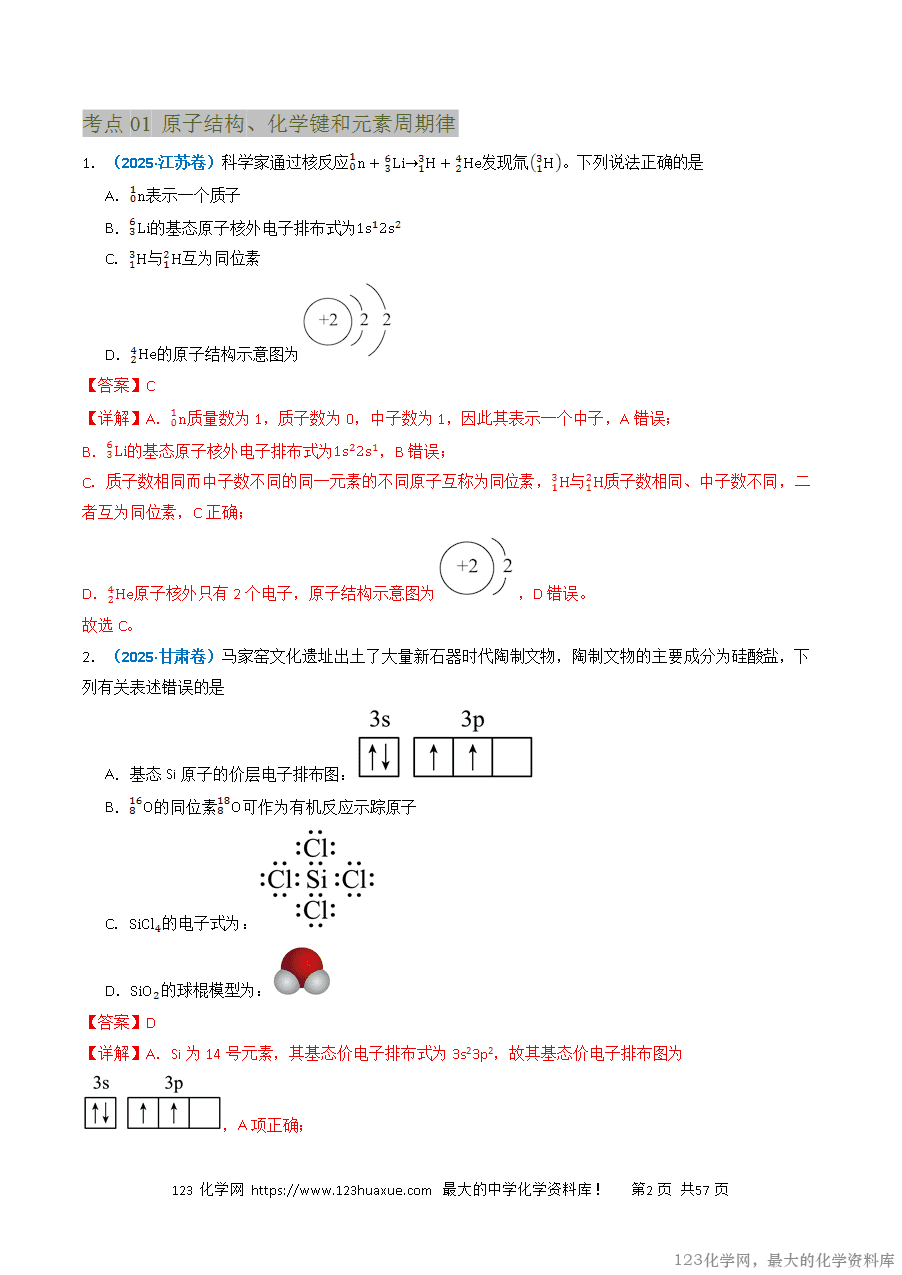 1.(2025·江苏卷)科学家通过核反应发现氚。下列说法正确的是
