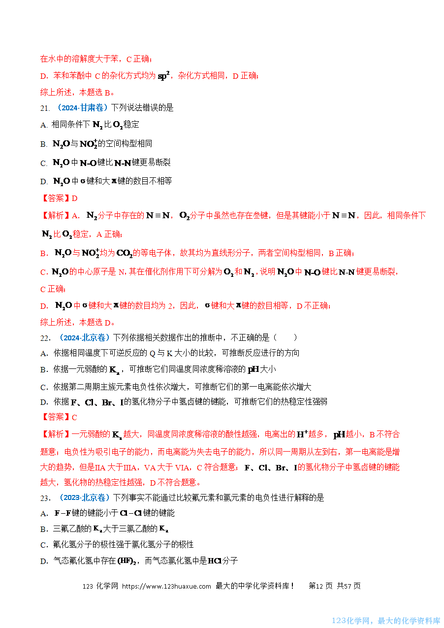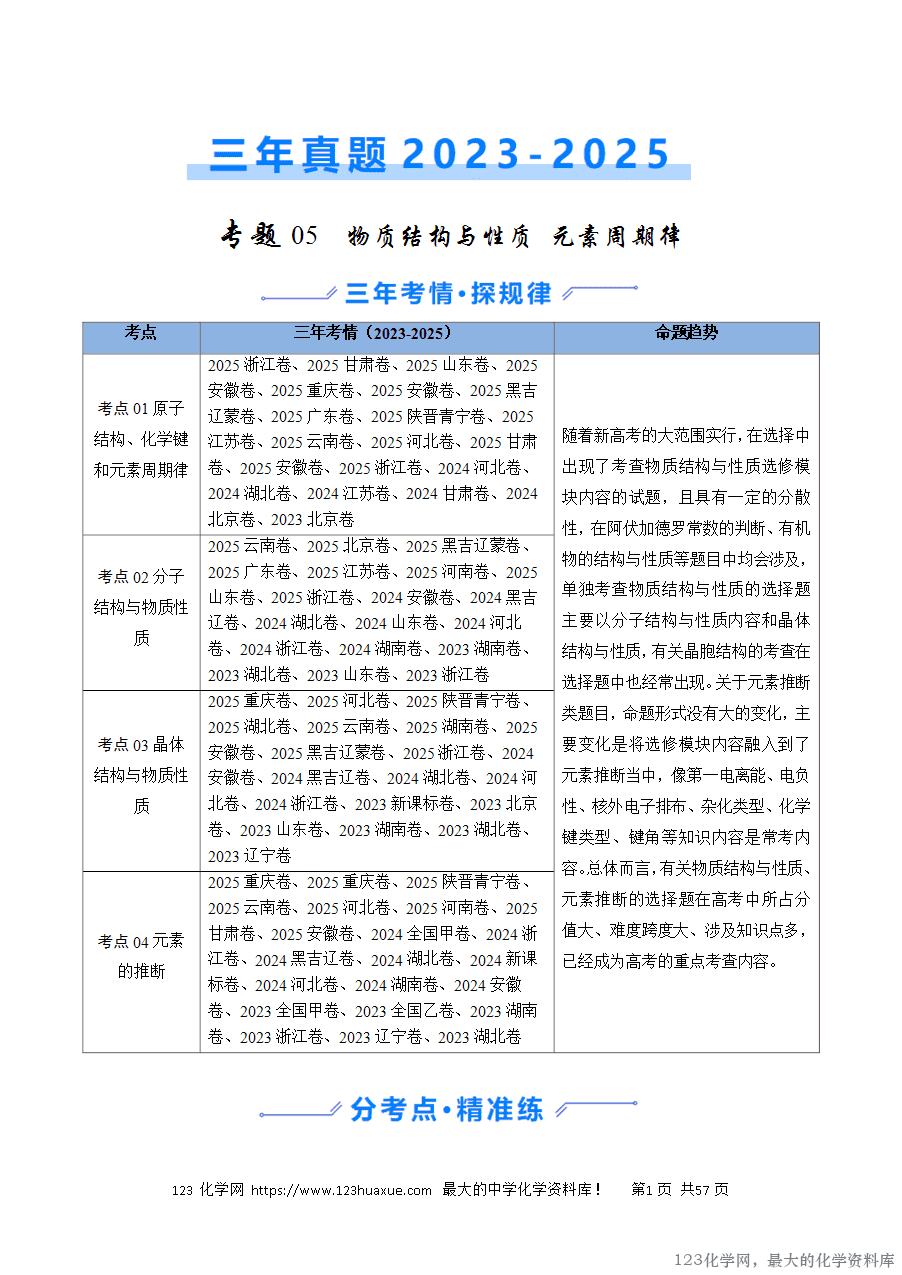考点01 原子结构、化学键和元素周期律