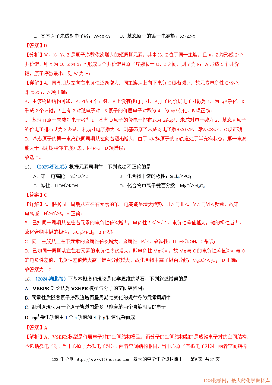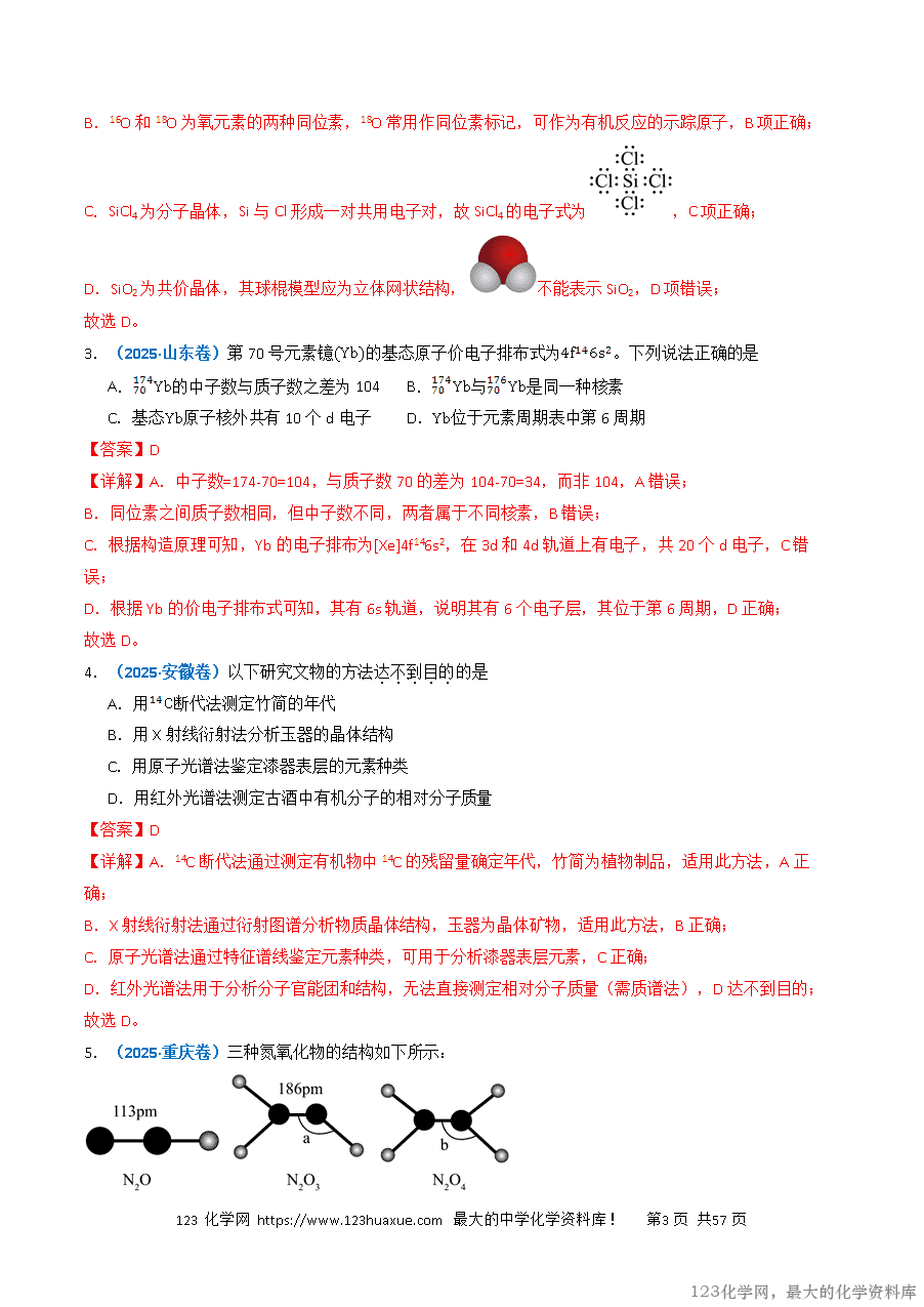 3.(2025·山东卷)第70号元素镱的基态原子价电子排布式为。下列说法正确的是