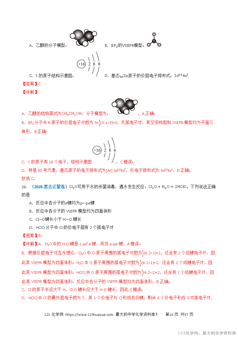 D.的球棍模型为: