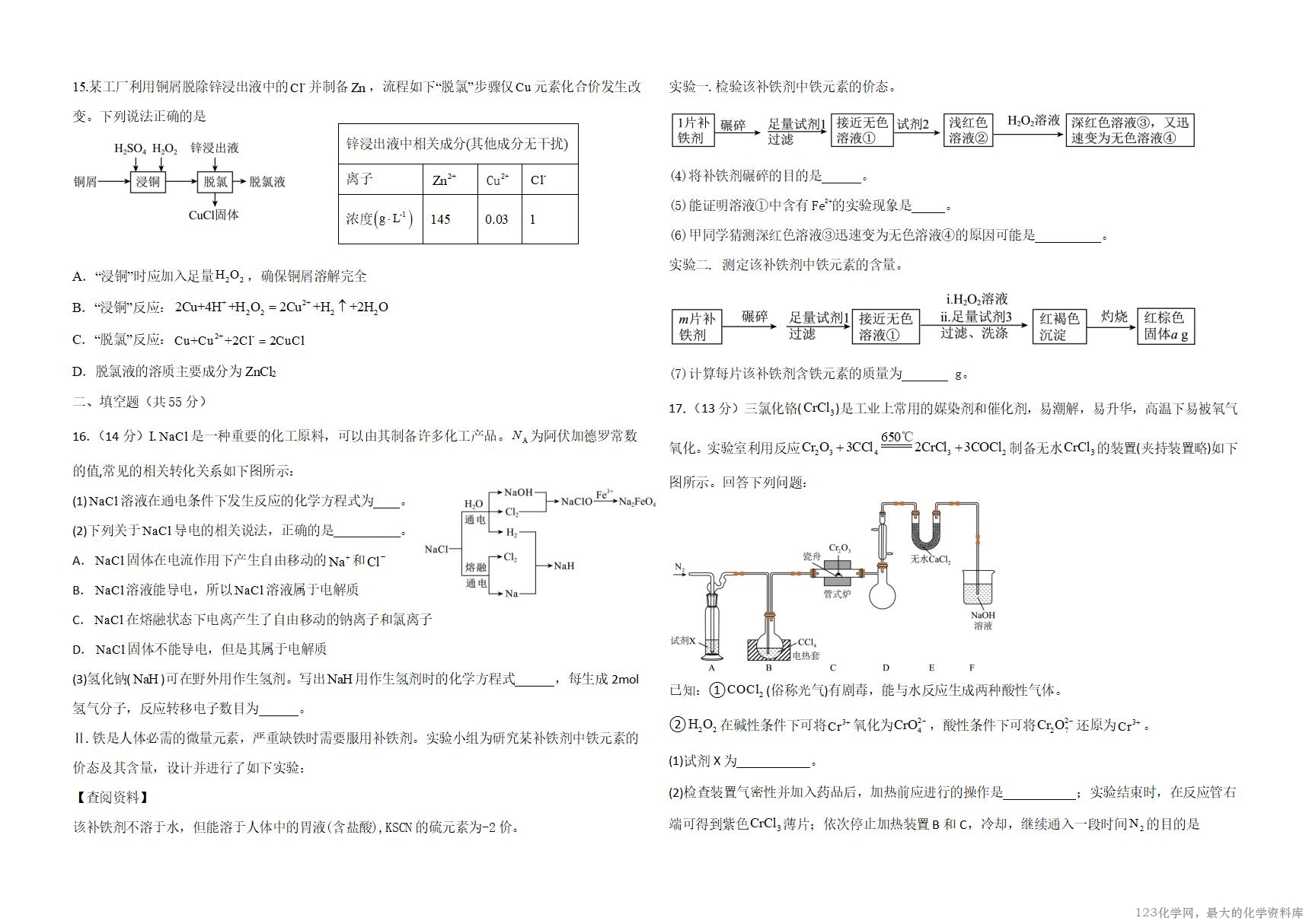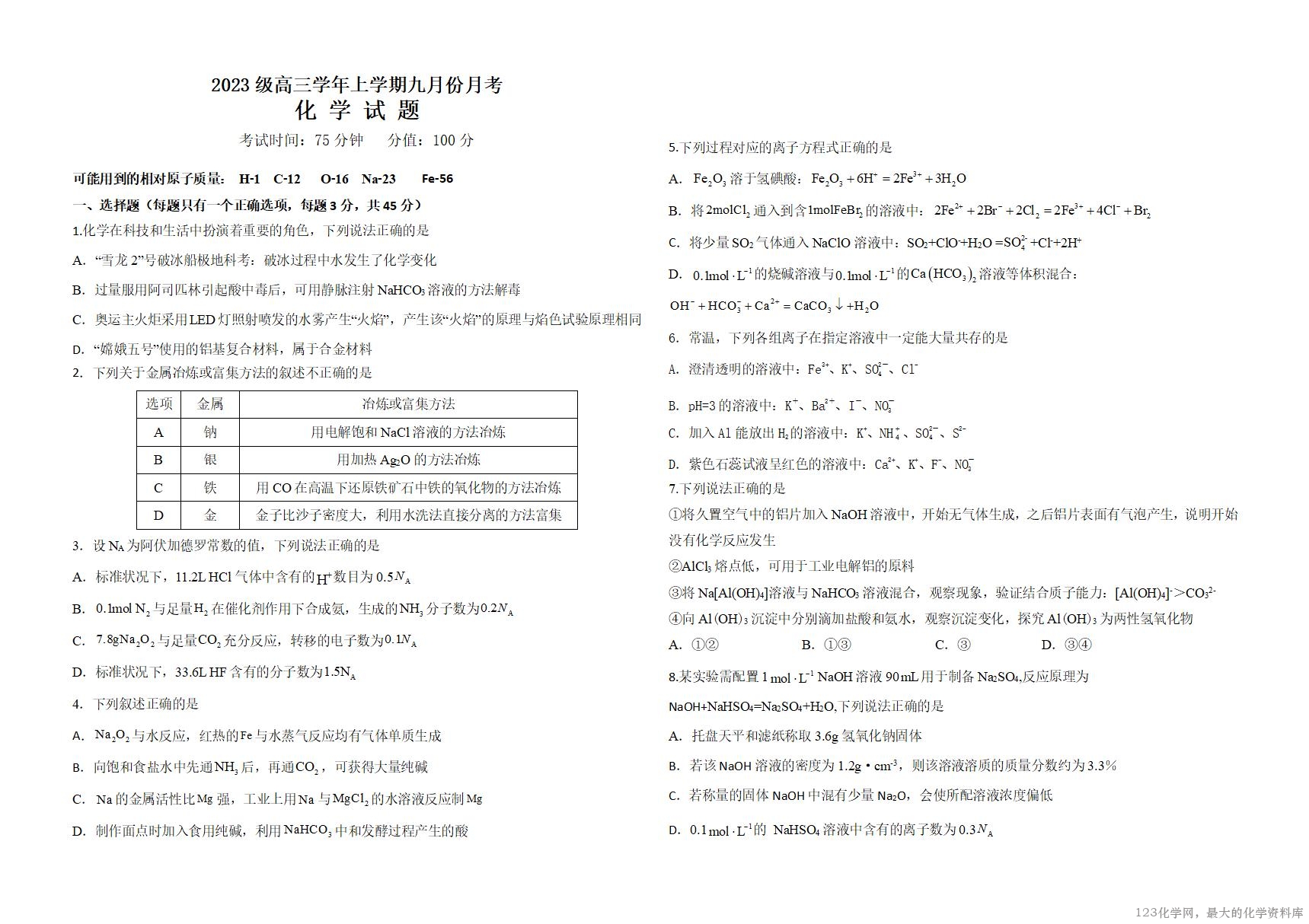 可能用到的相对原子质量: H-1 C-12 O-16 Na-23 Fe-56