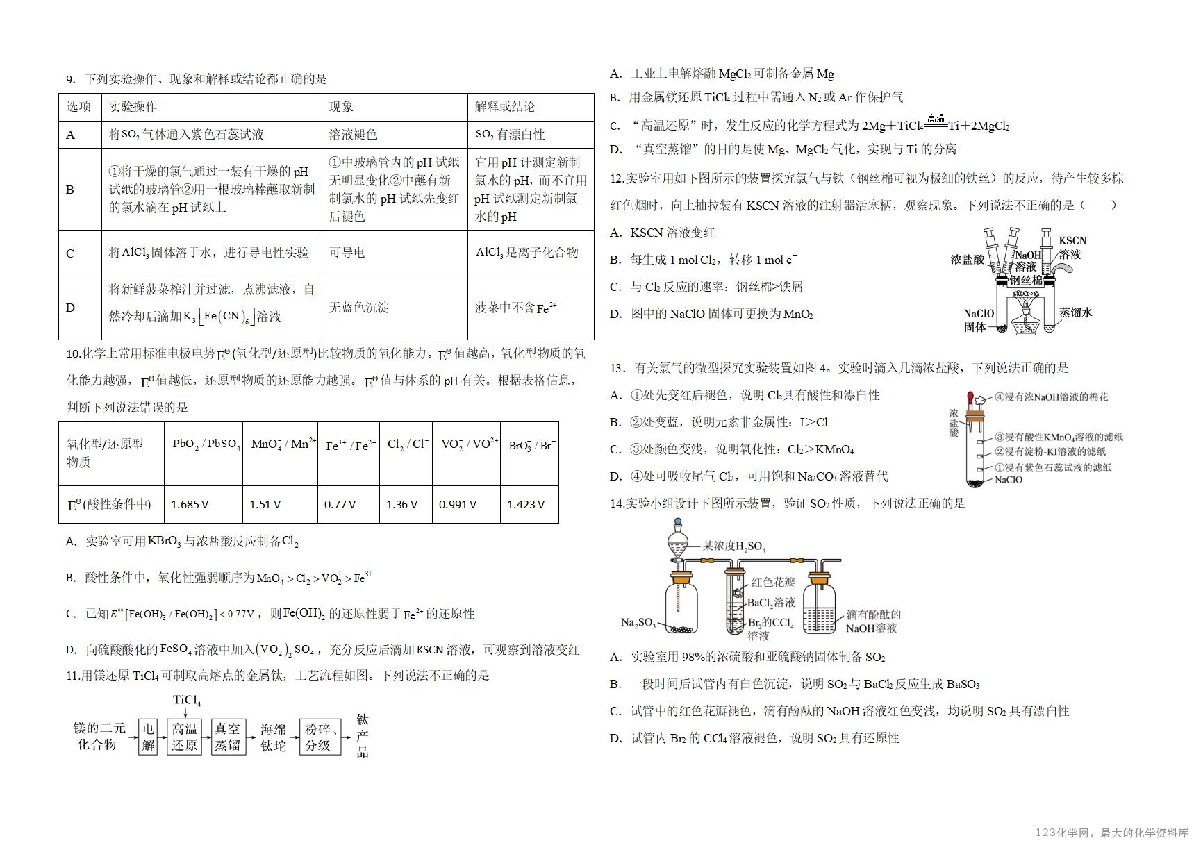 黑龙江省牡丹江市第一高级中学2026届高三上学期9月月考化学试卷word版含答案